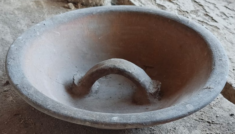 Benda terbuat dari tanah liat, tengahnya...