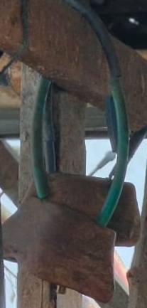 Genta dari kayu yang dijadikan kalung pa...